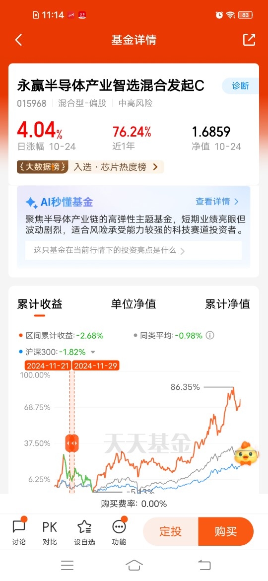 $永赢半导体产业智选混合发起C$整体趋势不错,弹性十足的,上周五涨幅4.84%,