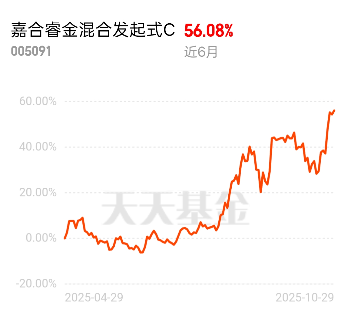 存储芯片产能紧张,CPO也因低延迟成刚需,这俩赛道涨势凶猛。嘉合睿金混合C踩准节奏,近六个月56.08%,不少人一周就赚了10个点。$嘉合睿金混合发起式C$