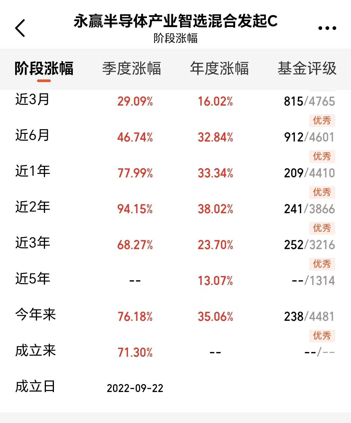 目前光刻机板块的龙头企业已经掀起了板块行情,后续上涨动力充足,值得期待。绩优产品$永赢半导体产业智选混合发起C$ (015968)紧跟行业趋势,深度布局光刻机赛道,以精选个股的投资策略,为投资者带来了稳健且可观的回报,近一年涨幅达77.99%!
