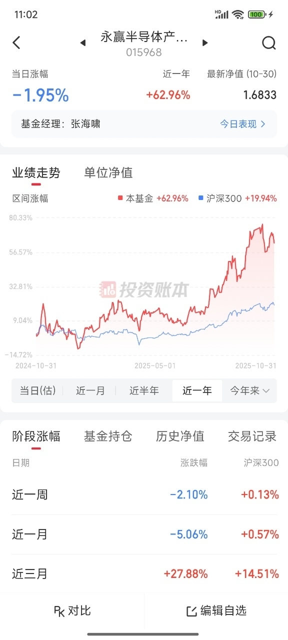 虽然今天A股震荡调整,三大指数均下跌了,不过我觉得向上的趋势没变,永赢半导体C015968重点关注半导体产业链,尤其聚焦光刻机国产替代,作为半导体制造的核心设备,光刻机成本占整个制造的30%,是最重要的一环,看好半导体,近一年收益77.51%,业绩非常亮眼。