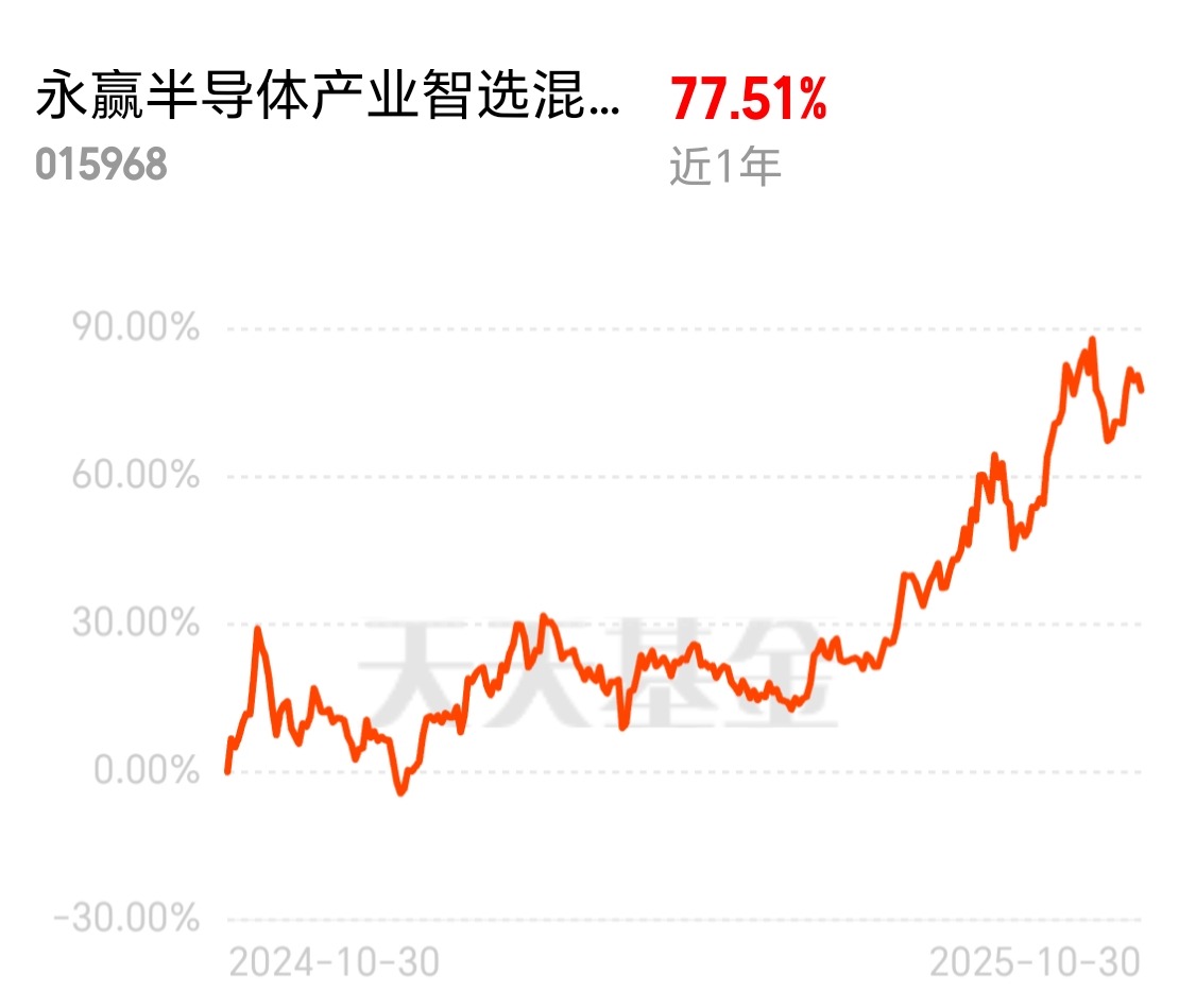 $永赢半导体产业智选混合发起C$ 深度布局半导体产业链,超64%仓位集中于电子行业,覆盖设备、材料、芯片设计等细分领域,与产业升级趋势契合度高。看业绩,近三月涨超28%,近半年涨超44%,近一年涨超77%,目前看,行情还在继续。趁今天倒车接人,上车试试。