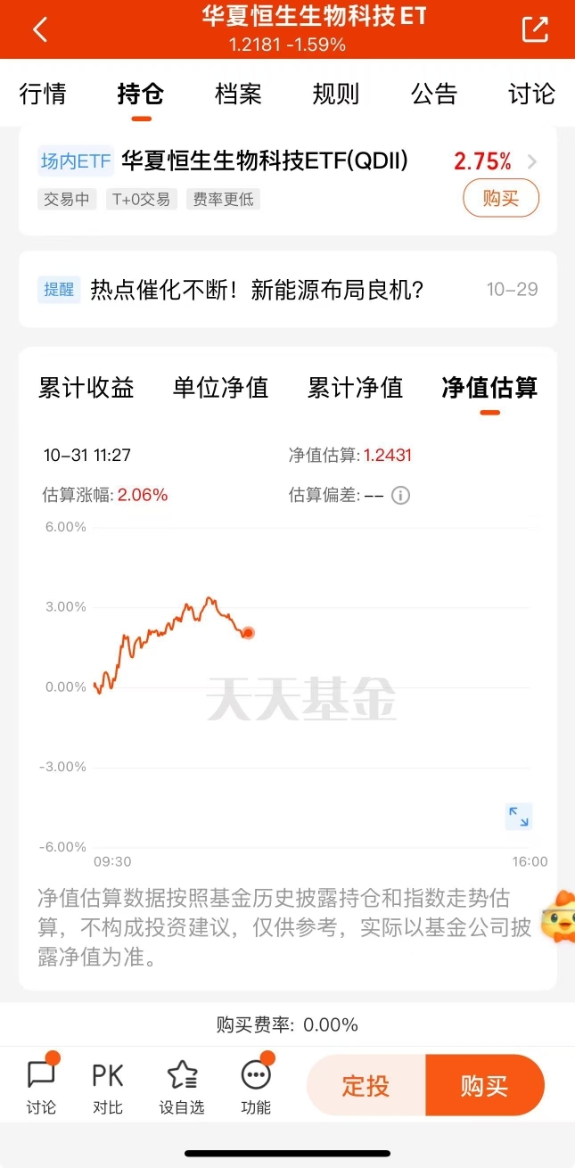 创新药继续发力,今天逆势上扬超2%,近6个月收益也31.74%,四季度直接重点布局$华夏恒生生物科技ETF发起式联接(QDII)C$