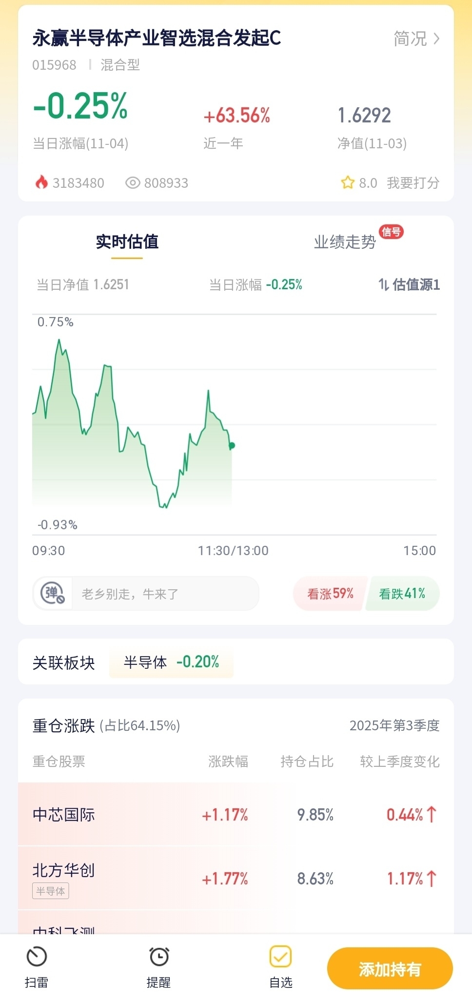 永赢半导体产业智选混合今日预估跌幅-0.25%!