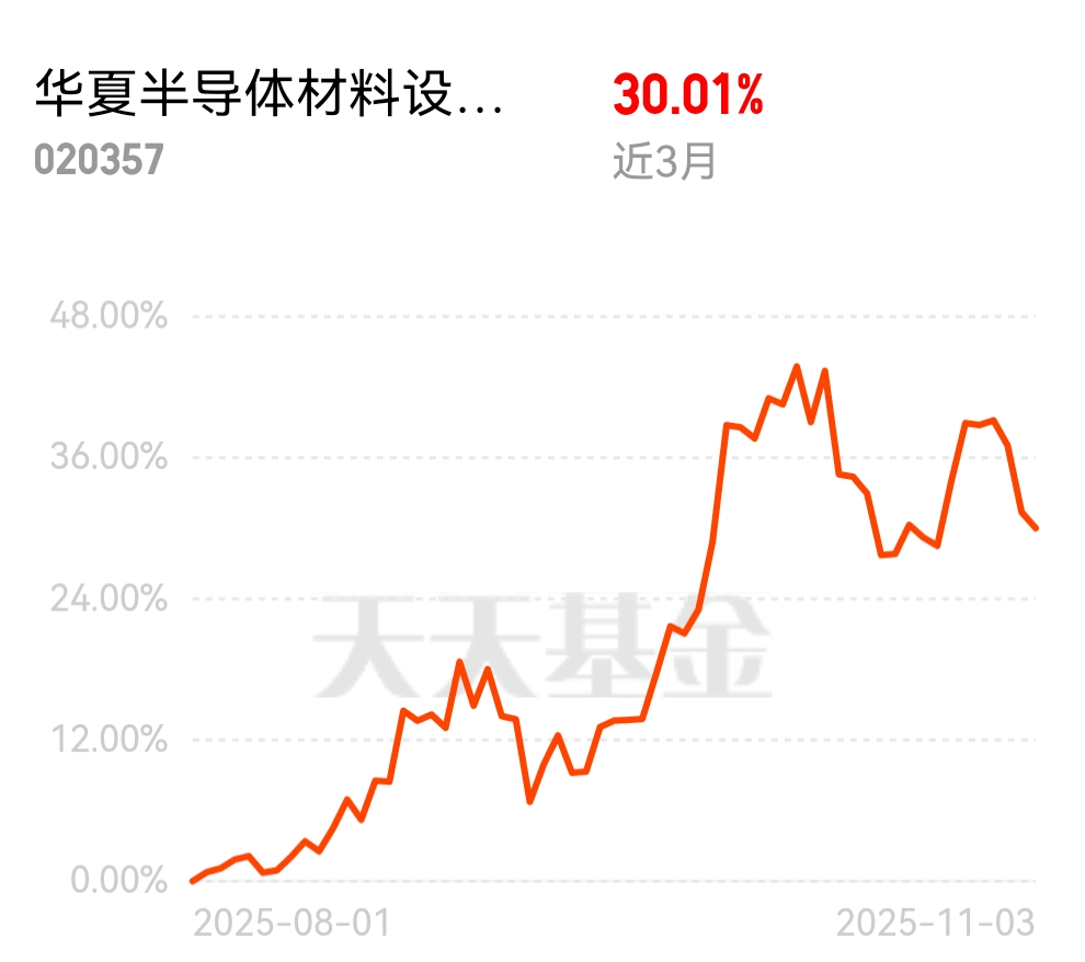 今天的半导体整体反弹,这基上涨表现不错,幸亏前面回调的时候加仓了,近3个月收益超30%,这里的收益也挺稳健,有点期待这波收益了$华夏半导体材料设备ETF联接C$