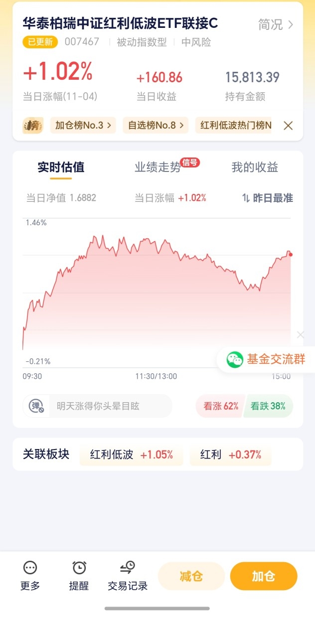 聊起今天的盘面,必须得夸夸红利低波!大盘来回震荡的时候,就它走得扎实,涨幅虽说不算暴涨,但胜在稳当,看着就让人安心。这板块能抗跌不是没道理的,里面的公司大多估值不高,还有稳定分红撑着,就像给投资加了层“安全垫”。普通人想抓住这个机会又怕踩坑,直接选华泰柏瑞就行,它家就是做这个方向的,不用咱们天天盯盘研究,省心得很,刚好匹配现在想稳稳赚点收益的心态。基金有风险,投资需谨慎。$华泰柏瑞中证红利低波ETF联接C$ #基金经理开实盘啦#