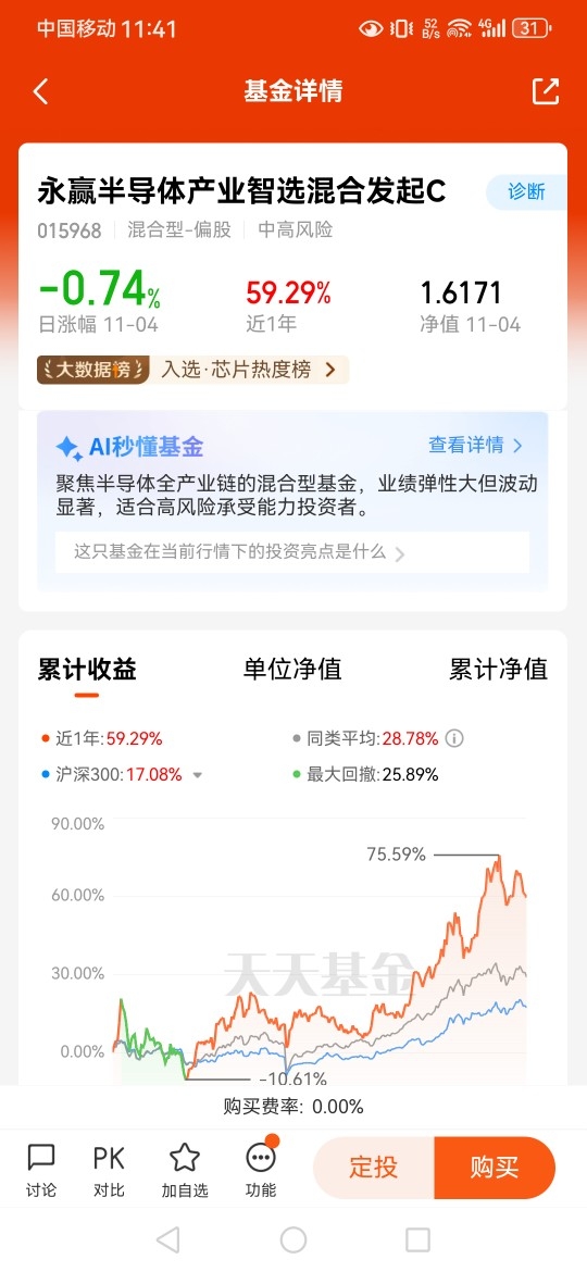 $永赢半导体产业智选混合发起C$ 赛道好反弹能力强,弹性十足,给机会不能错过了,近一年涨幅+59.29%,永赢半导体产业智选通过深入研究光刻机产业链,挖掘出了其中的投资价值,为投资者把握住了半导体行业的展机遇,现在开始着手布局明年行情也是不错的呀,布其上涨空间广阔,未来可期呀。#11月基金投资策略#