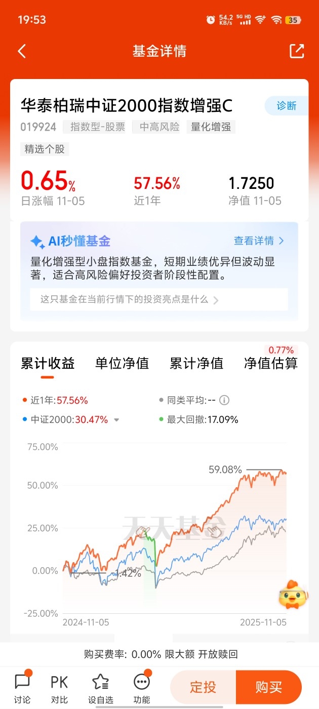 今天盘面看下来,大盘还是有点磨,但微盘股是真的抗跌,在一堆调整的板块里还能排进前列,活跃度肉眼可见。想想也是,现在11月市场没什么明确的大方向,之前涨得多的科技也歇了,资金自然就往题材多、弹性大的微盘股跑了,这时候小微盘的机会确实更突出。想跟着喝口汤又怕选股踩坑的,其实可以看看华泰柏瑞的产品,它家做2000指增很有一套,之前在同类里超额收益都是排第一的,专业的人帮着把握机会,比自己瞎买稳多了。#A股低开高走!国际资本看好中国资产# $华泰柏瑞中证2000指数增强C$