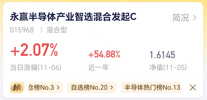 光刻机赛道正经历前所未有的变革。而$永赢半导体产业智选混合发起C$ (015968)正是这一赛道的受益者,各种利好下,今天上涨超2%。