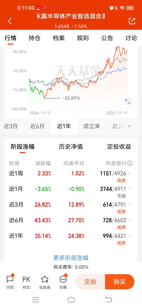 $永赢半导体产业智选混合发起C$趁着调整后收集点筹码,近一周涨幅2.33%,近三