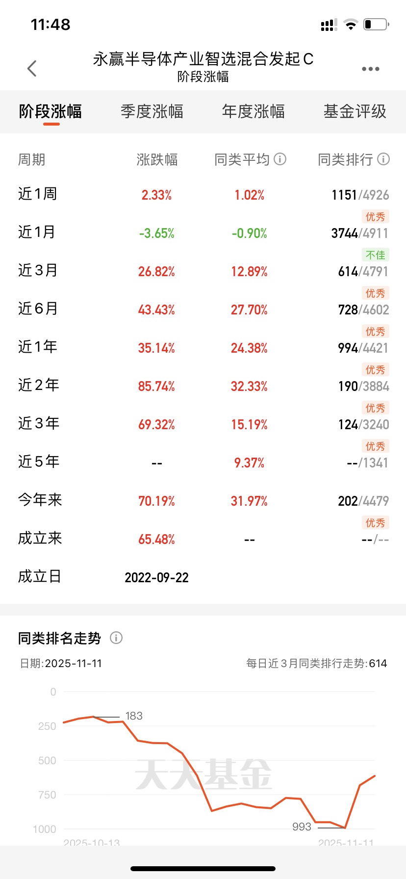 $永赢半导体产业智选混合发起C$ 聚焦半导体产业,主要关注光刻机产业链,近三个月26.82%涨幅,近半年43.43%涨幅,业绩表现在同类中还是很优秀的!光刻机是半导体的核心设备,弹性比较强,随着科技不断创新发展,加上目前估值低位,未来空间还是很大的,值得期待了!