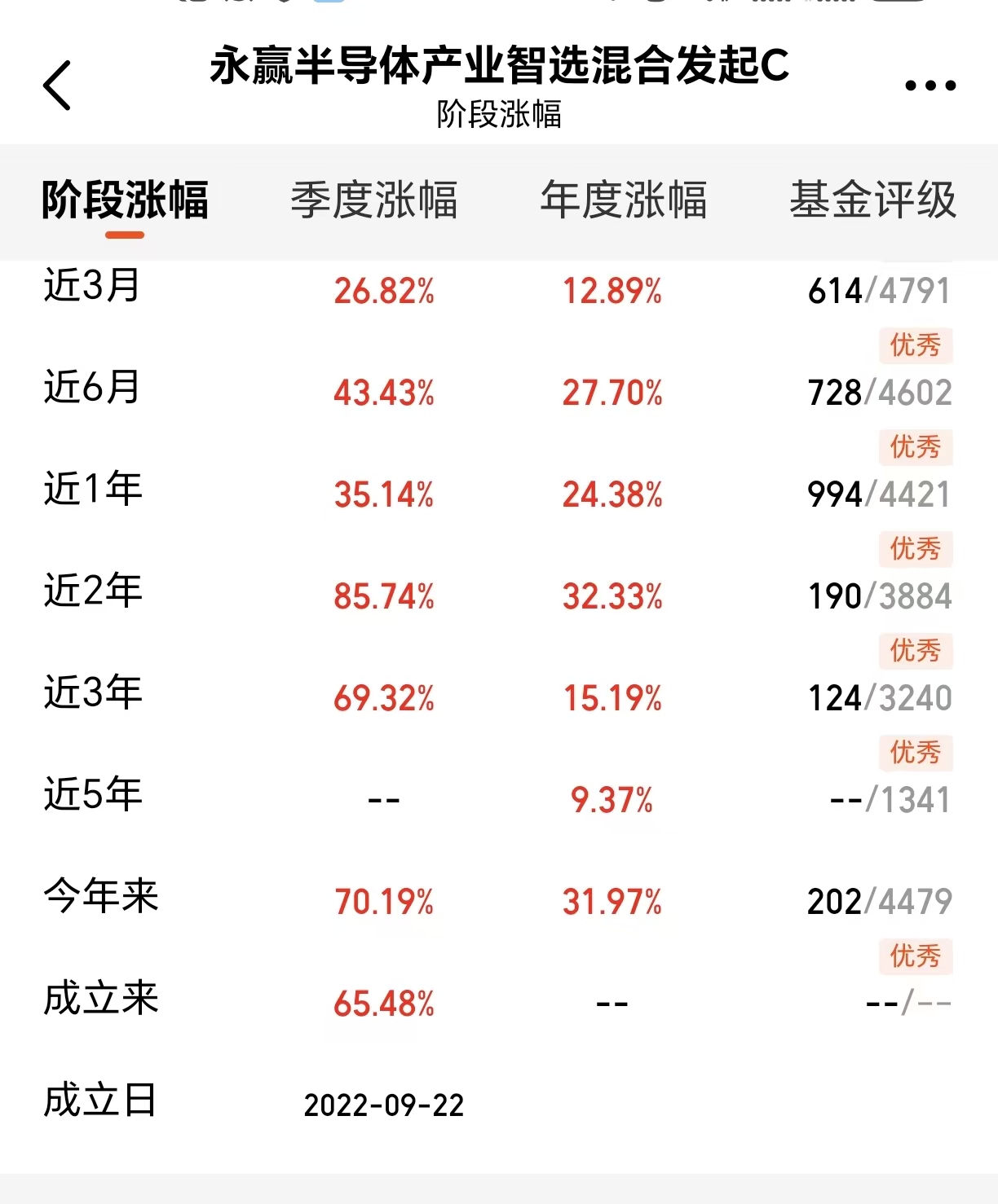 永赢半导体产业智选混合C(015968)的重要优势在于对光刻机行业的精准聚焦。它不做泛化布局,而是深挖光刻机产业链上下游优质标的,从重要设备制造到关键零部件供应,再到材料配套环节,精选具备技术壁垒和成长潜力的个股构建组合。扎实的布局带来了亮眼的业绩回报:近3月上涨26.82%,近6月上涨43.43%,近2年上涨85.74%,今年来更是斩获70.19%的高收益,用持续稳健的表现印证了其投资价值。