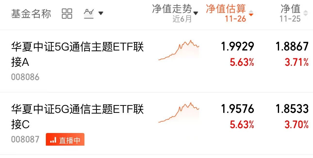 大科技方向继续领涨,这基今天上涨太牛了,上涨5%+,昨天上涨3.70%,$华夏中证5G通信主题ETF联接C$这收益就坚定持仓吧