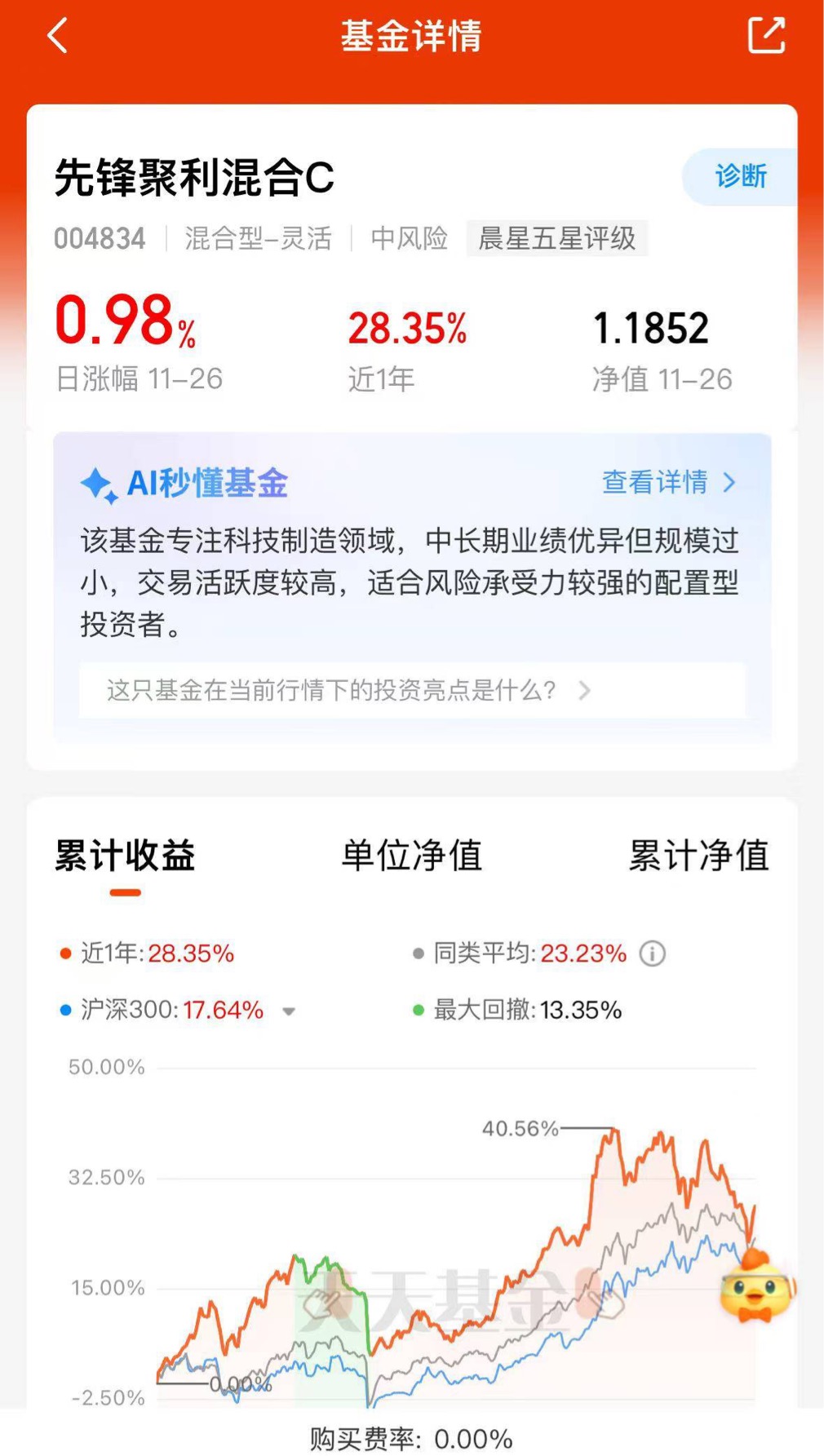 科技板块的反弹苗头已经显现,先锋聚利C今日估值上涨印证了这一点,连续几年的优异排名证明其管理能力,科技长期处于上涨趋势,这样的主动基适合长期持有。
