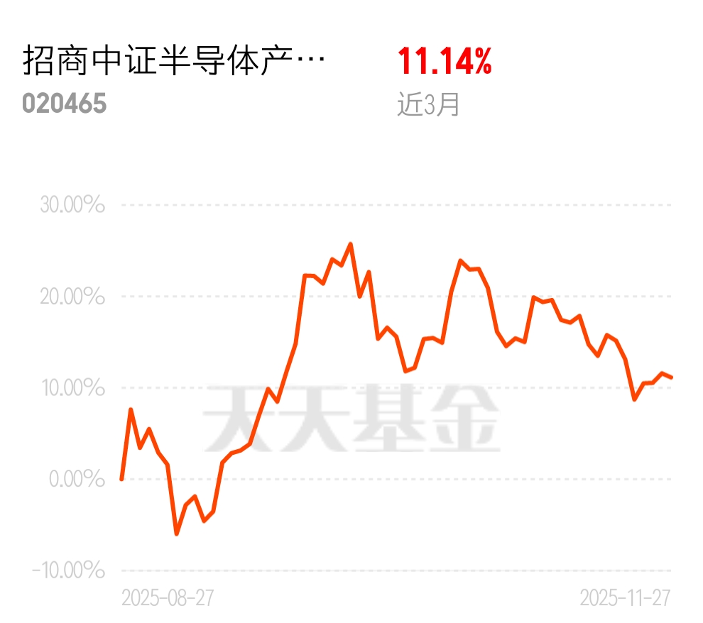 今日A股走出V字拉升态势,市场情绪逐步回升,半导体板块凭借前期积累的利好优势,走势格外强劲。招商中证半导体产业ETF联接C表现出色,近3个月业绩达到11.14%,跟着板块红利走,适配日常投资需求。 $招商中证半导体产业ETF发起式联接C$