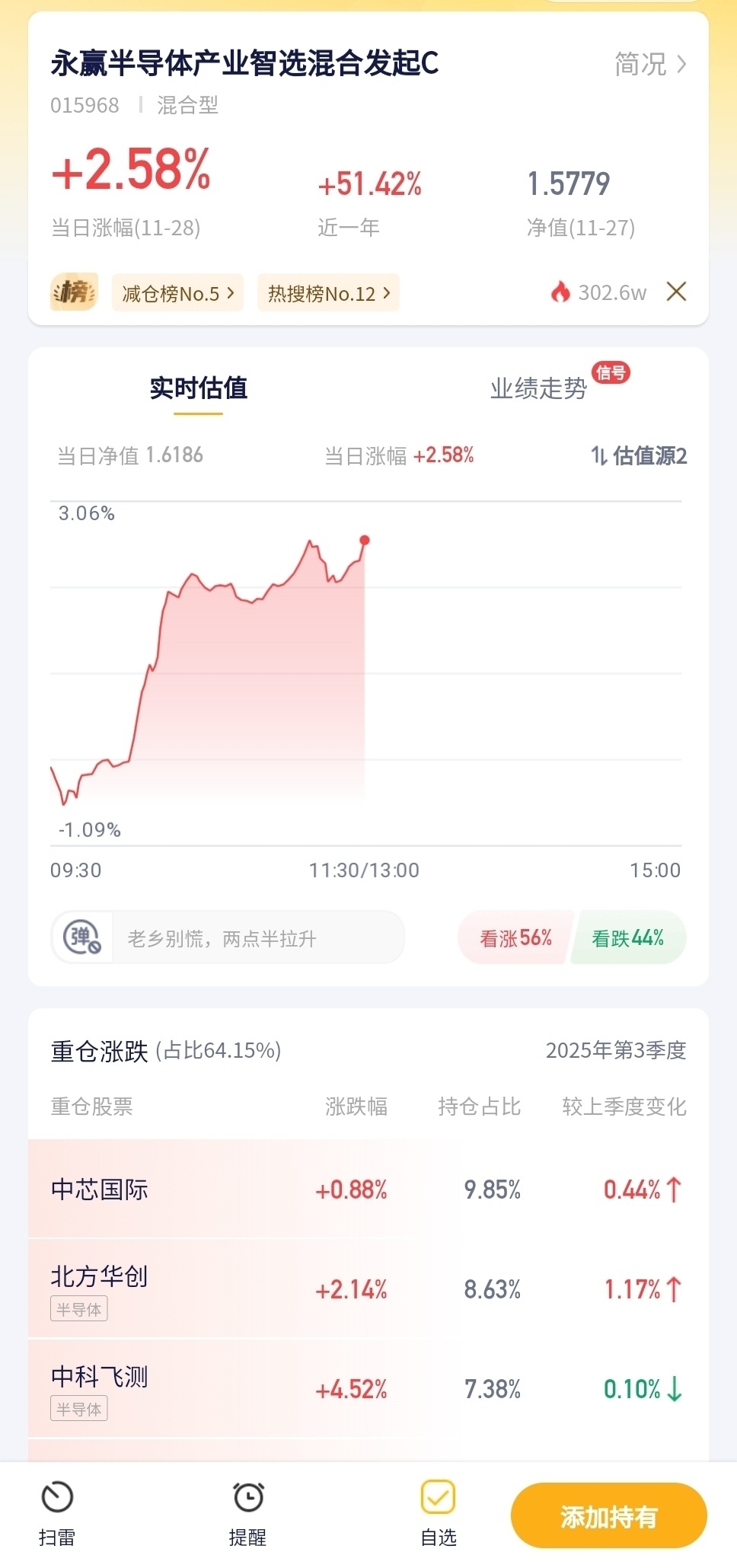 永赢半导体产业智选混合发…今日预估涨幅+2.58%!