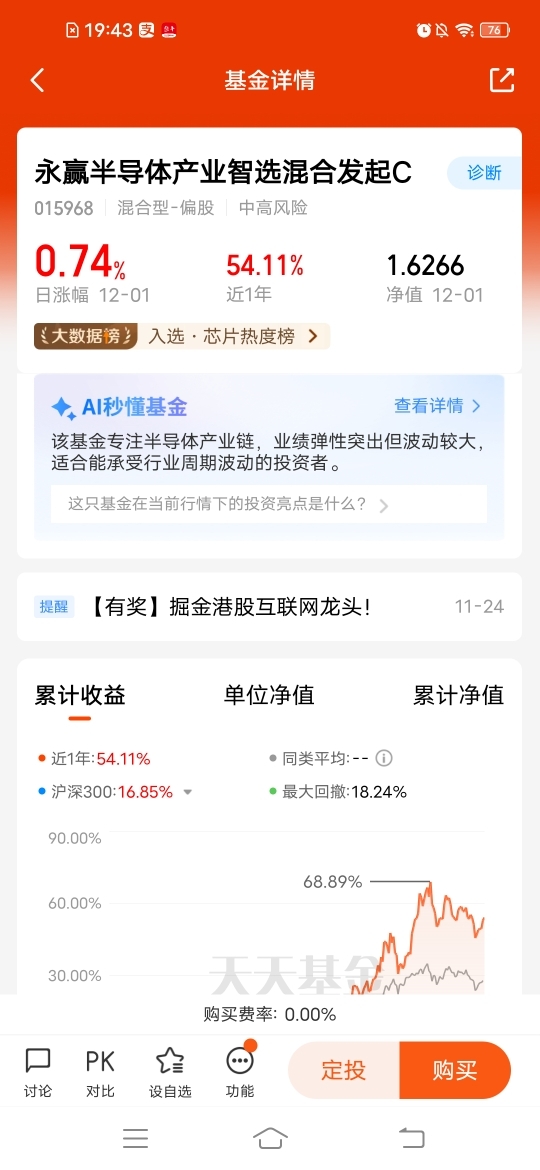 $永赢半导体产业智选混合发起C$ 主打光刻机,今晚更新涨幅0.74%,近半年涨幅47.99%