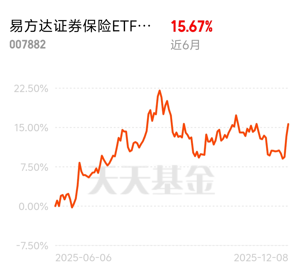 易方达证券保险 ETF 联接 C 太能涨了!昨天大涨 2.08%,近半年 15.67% 的涨幅,当下位置刚刚好,板块轮动到券商保险,我接着加仓,想赚的别落后!$易方达证券保险ETF联接C$