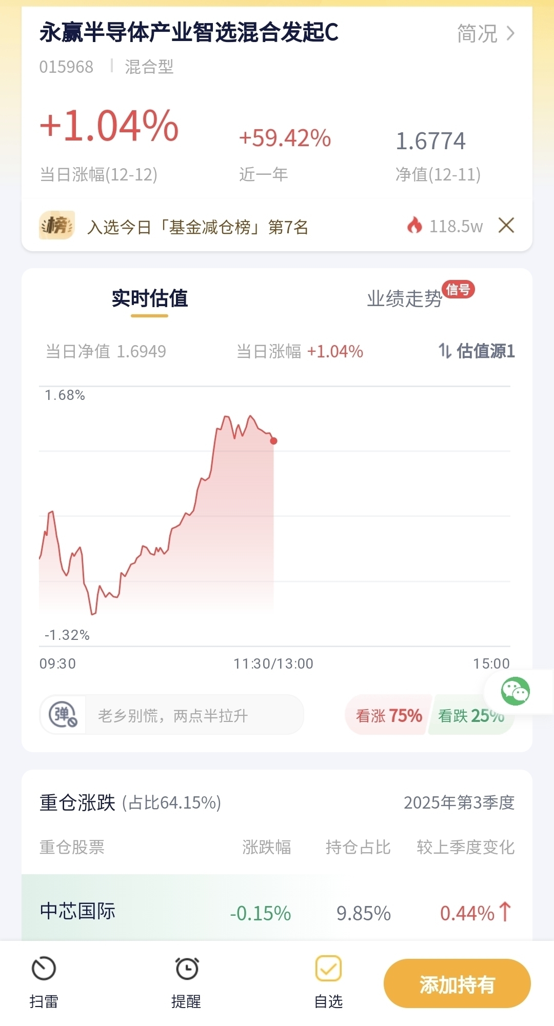 永赢半导体产业智选混合发起C今日预估涨幅1.04%!