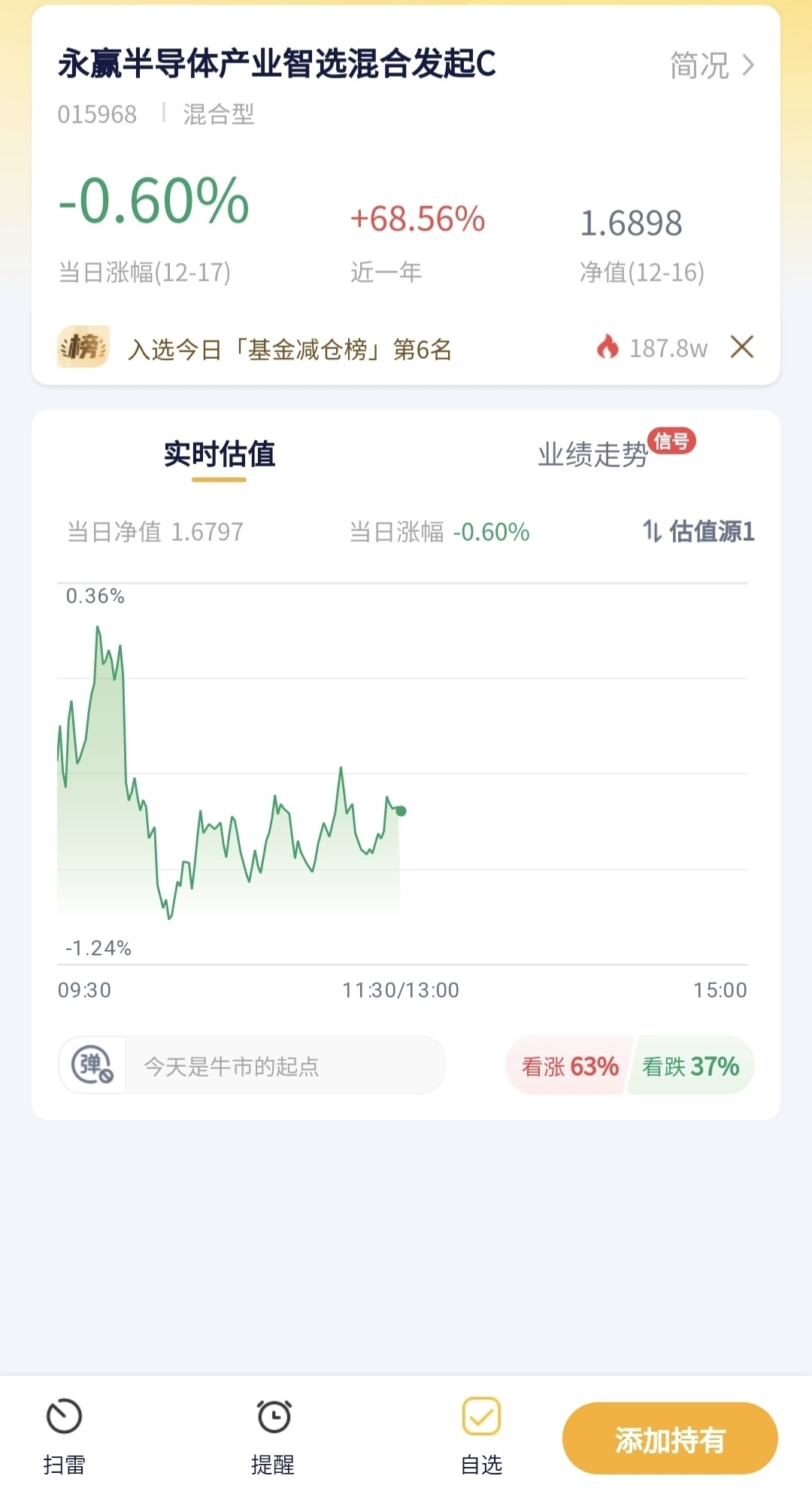 半导体板块今天走弱了,这只半导体基金跌了0.6%,行业内短期缺乏利好刺激,加上部分资金获利了结,个股下跌让基金净值跟着往下掉。