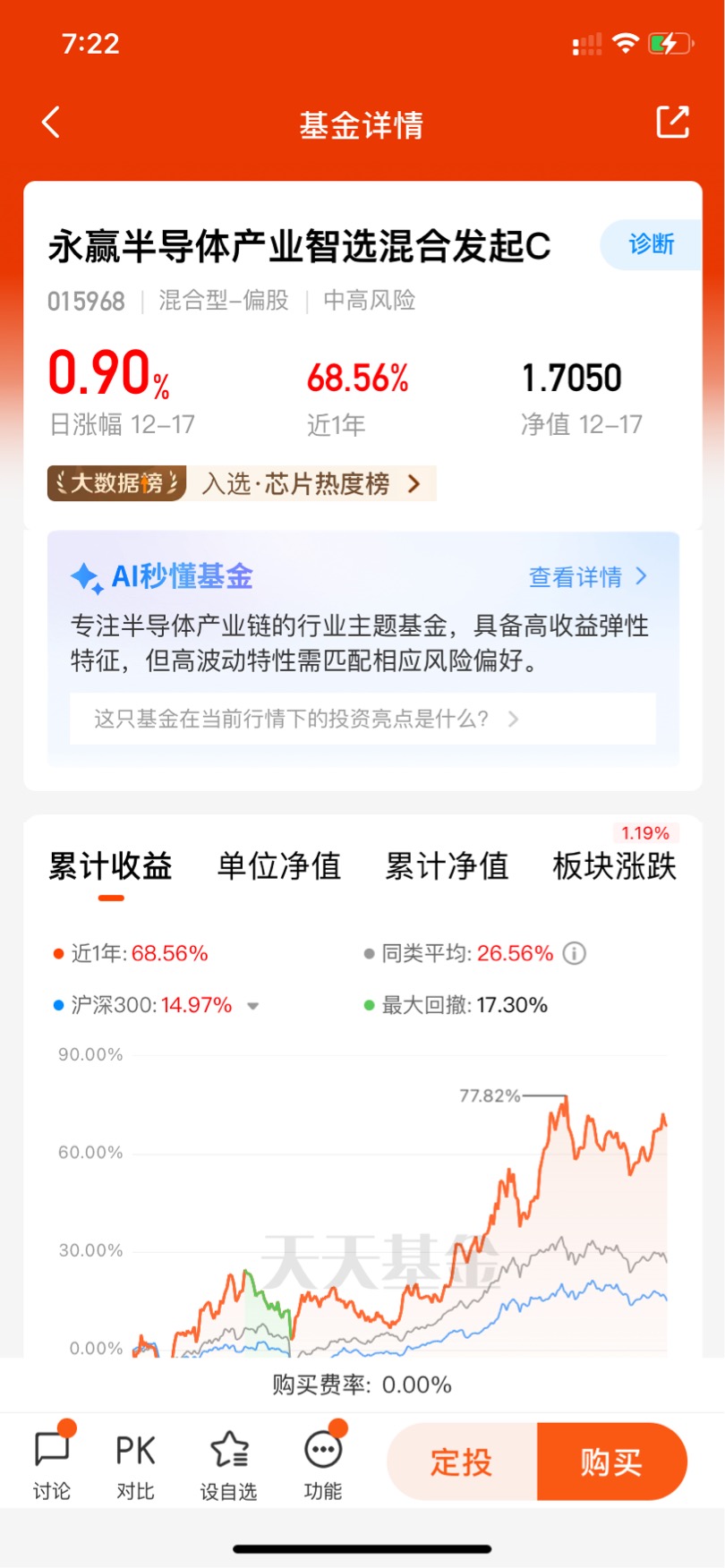$永赢半导体产业智选混合发起C$ 今天涨了0.90%,近半年涨超54%,各个阶段业绩表现都很优秀!这里是一只专注半导体产业链的小盘成长风格基金,聚焦光刻机产业链,光刻机是半导体的核心,其弹性很强,值得期待了!