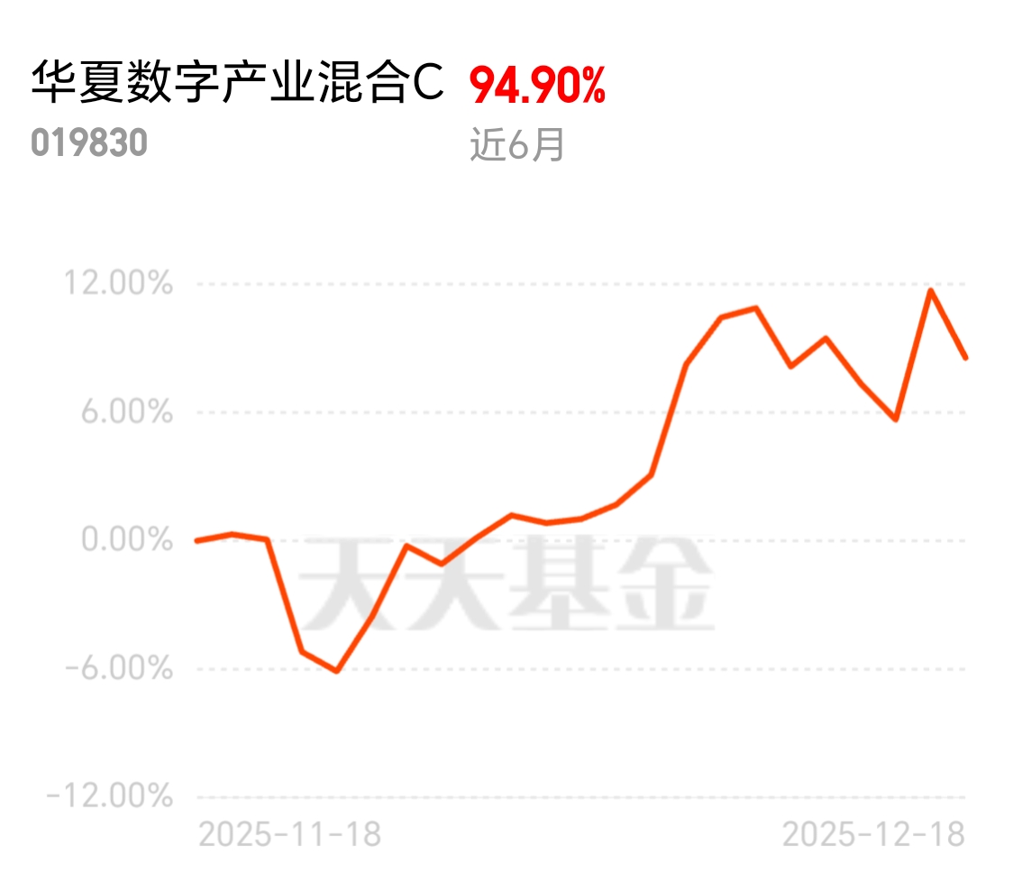 这只基近半年收益94%+,近1个月收益8.56%,$华夏数字产业混合C$高弹性高