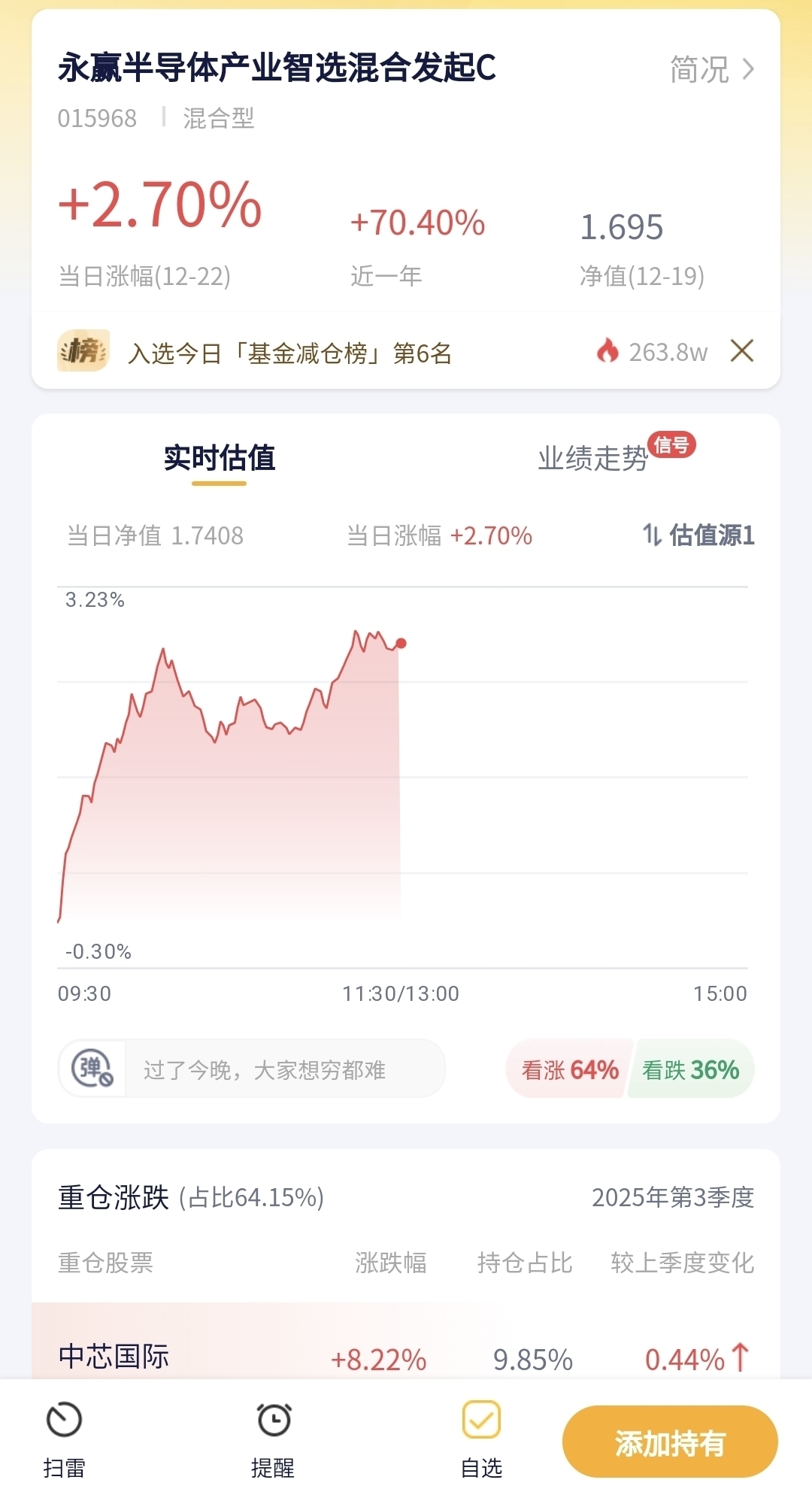 永赢半导体产业智选混合发起今日预估涨幅2.70%!