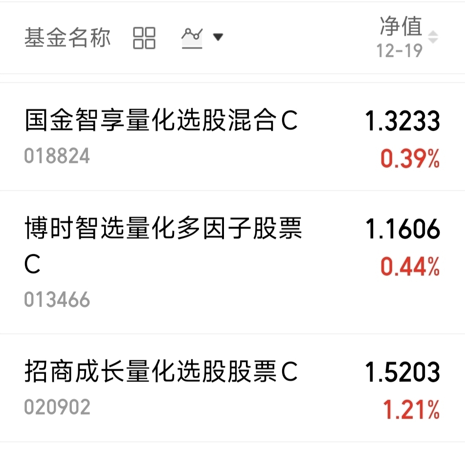 $招商成长量化选股股票C$ 周五上涨了1.21%。主动的量化基金。神奇的表现,做到了涨多跌少。