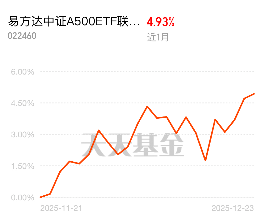 现在股市结构化机会多,宽基能覆盖更多行业红利。易方达中证A500ETF联接C近1