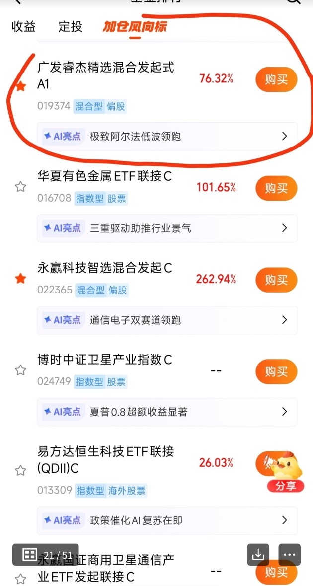 看到我买的睿杰上了平台加仓榜前排,果然英雄所见略同,这基的策略就是把商业航天、脑机接口这些热点都打包进一个组合里轮动,不用自己一个个追风口,近三个月涨了37%+,还是厉害$广发睿杰精选混合发起式A1$