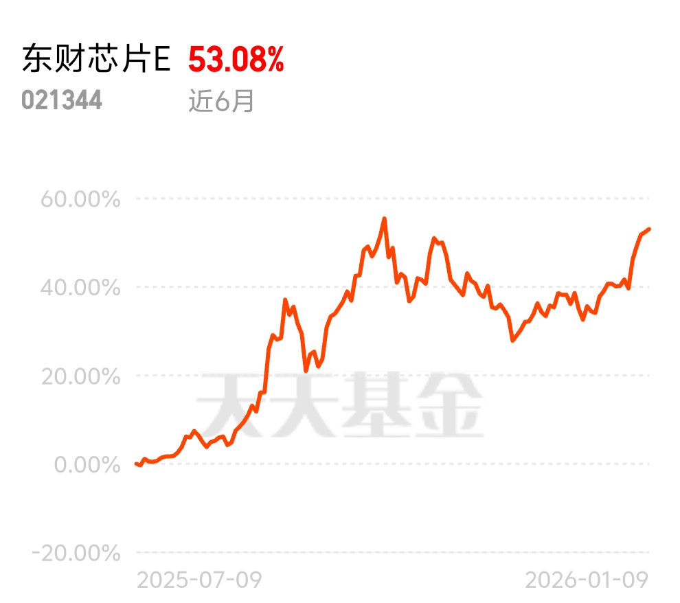 现在闭眼买科技股不如选对基金,芯片板块强者恒强,赚钱效应肉眼可见。东财芯片 E 近 6 月 53.08% 的表现没让人失望,4100 点以上冲芯片,梭哈了,还有一波!$东财芯片E$