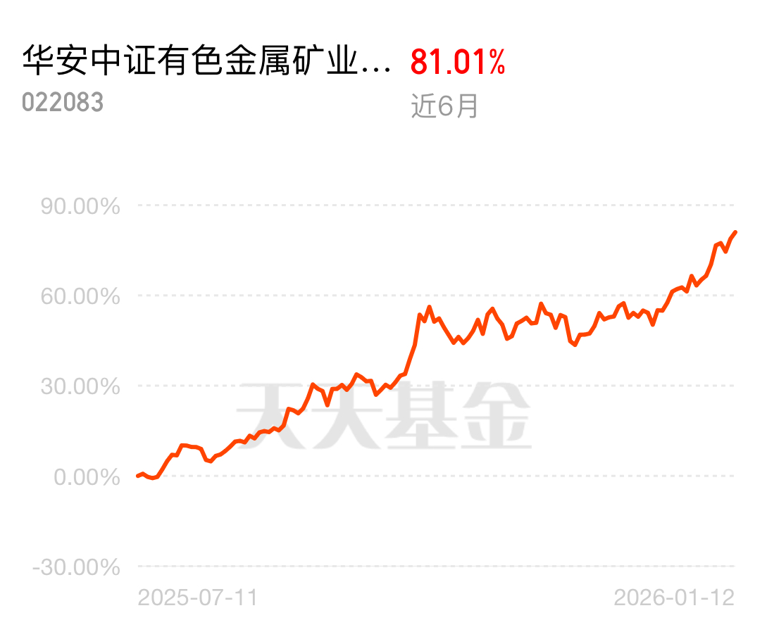 $华安中证有色金属矿业主题指数发起式A$ 单日涨1.24%,近六月暴涨81.01%,本来还怕周期波动,这收益直接打消顾虑,持有太香了