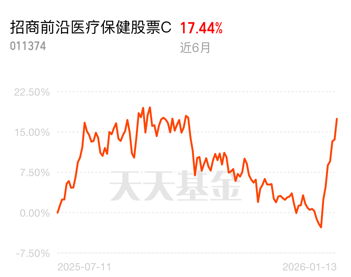 全球医疗投资风向标会议正在开,中国创新药企的海外合作频频落地,行业情绪越来越足。医药之前的回调已经过去,趋势逐步明确,日收益 3.4% 很有吸引力,聚焦创新药 + 医疗器械,招商前沿医疗保健股票 C 近 6 月 17.44% 表现稳健。$招商前沿医疗保健股票C$