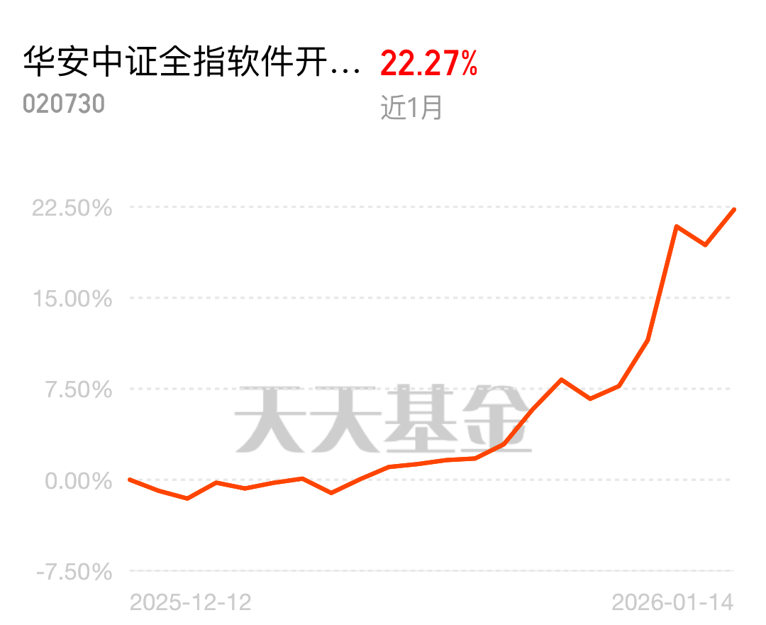 $华安中证全指软件开发ETF发起式联接C$ 近 1 月涨幅近 22.27%,近 1 年收益破 37.99%,费率优势拉满,智能体浪潮上车趁现在