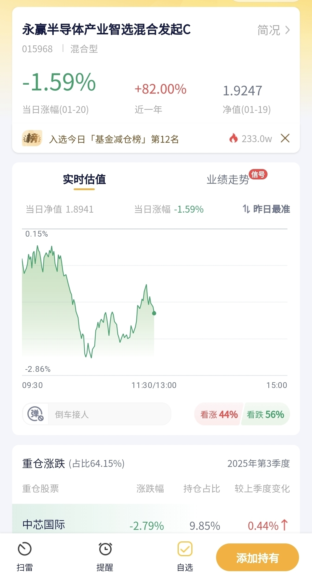 永赢半导体产业智选混合发起C今日预估跌幅1.59%!