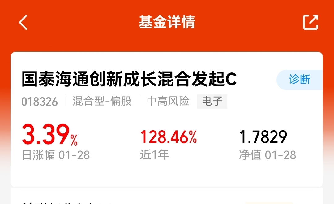 国泰海通创新成长混合C太香了,今晚大涨3.39%,短期涨势猛长期收益稳,近一年翻