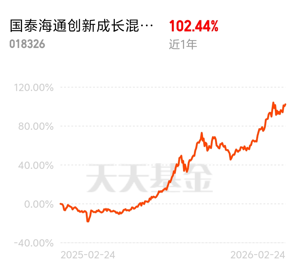 算力需求未见停歇,半导体行业向前发展,近一年收益率+102%,相较于追逐短期热点,这更显稳健。$国泰海通创新成长混合发起C$