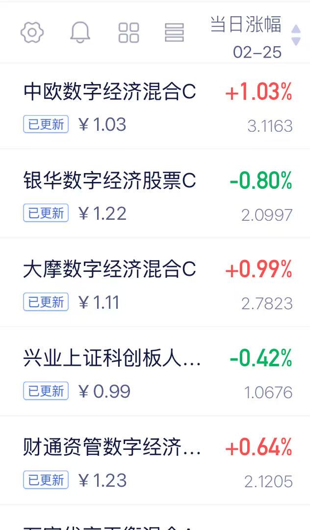 中欧数字经济混合C 今天上涨1.03%