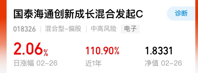 太给力了,近一年涨幅110.90%,单日涨2.06%,净值1.8331,认准主线,收益马不停蹄