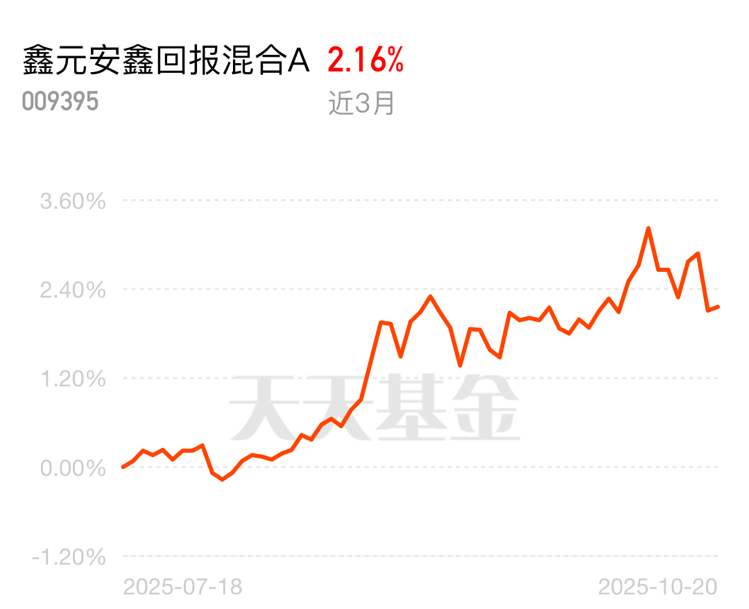 纯股基最近波动也太猛了,跌的时候肉疼到揪心;纯债基收益又有点少,根本不够解馋!混合基就舒服多了,风险收益都均衡。鑫元安鑫回报混合 A 现在位置刚好,想平衡风险又要收益的,上车肯定不亏!$鑫元安鑫回报混合A$