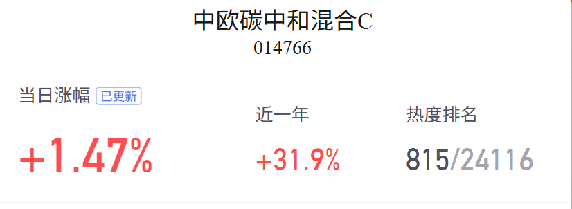 中欧碳中和C今日报净值上涨 1.47% ,近期碳中和主题持续升温,新能源、储能及绿色制造链表现活跃,市场资金再度回流环保赛道。该基金聚焦于节能减排、清洁能源、低碳科技等方向,把握政策与产业双重红利。随着全球减排共识强化、绿色转型提速,碳中和板块仍具中长期潜力。稳步上涨,低碳未来可期。