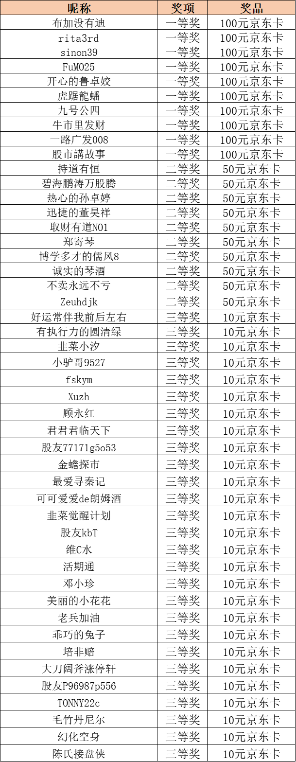 本次,【瓜分2000元京东卡】电池VS芯片,你更看好谁?活动,在大家的热情参与下,圆满结束啦!为了回馈小伙伴们的热情,现公布本次获奖的用户名单~