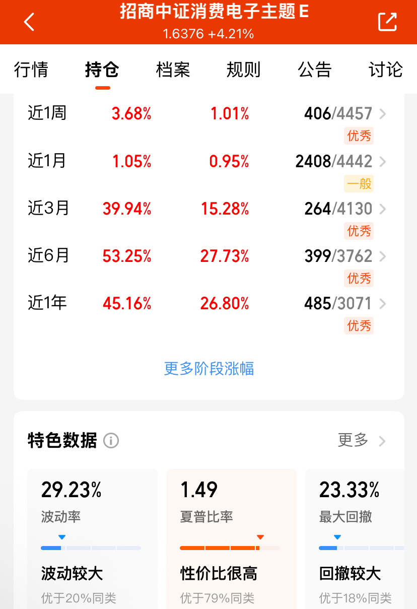 今天股市低开震荡,大科技有所分化,电子消费小幅回调,趁势可以适当布局一波$招商中证消费电子主题ETF联接C(OTCFUND|016008)$的,它昨天大涨+4.21%,主要是因为苹果新机17系列的销量超预期,要知道苹果股价周一也大涨4%了,另外关税预期缓和也对消费电子形成提振,所以后续可以继续波段博取收益的!$海富通消费优选混合C(OTCFUND|010422)$$汇添富中证主要消费ETF联接C(OTCFUND|012857)$#高盛看多A股:慢牛正形成 还有约30%上涨空间##黄金创12年来最大单日跌幅!什么信号#