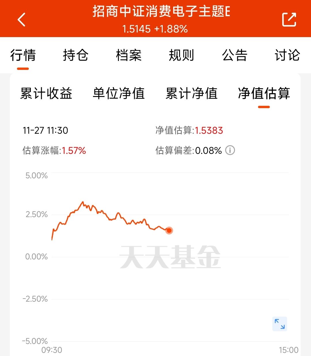 今天行情真不错!豆包 AI 手机 12 月 10 日就要发布,加上国产芯片技术不断突破,给消费电子板块带来不少利好,资金也开始主动进场布局。$招商中证消费电子主题ETF联接C(OTCFUND|016008)$持仓超硬核,涵盖立讯精密、歌尔股份这些行业龙头,还包括中芯国际、工业富联等核心企业,能精准捕捉板块红利。这只基金业绩超给力,年化收益率达 42%,我继续看好这个板块。