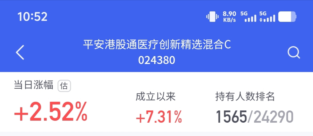 今日市场简直是一片的景象!早盘直接跳空高开,各大指数全线飘红,涨势喜人!当下市场板块轮动特征明显,“选择大于努力”这句话在此时格外贴切! 眼下冬季正是流感高发季,创新药板块无疑迎来了绝佳的发力窗口,爆发潜力十足!$平安港股通医疗创新精选混合C$今日估值大涨2.52%,昨日也收获0.23%的涨幅,妥妥的“涨势节节高”,发展前景肉眼可见的亮眼!