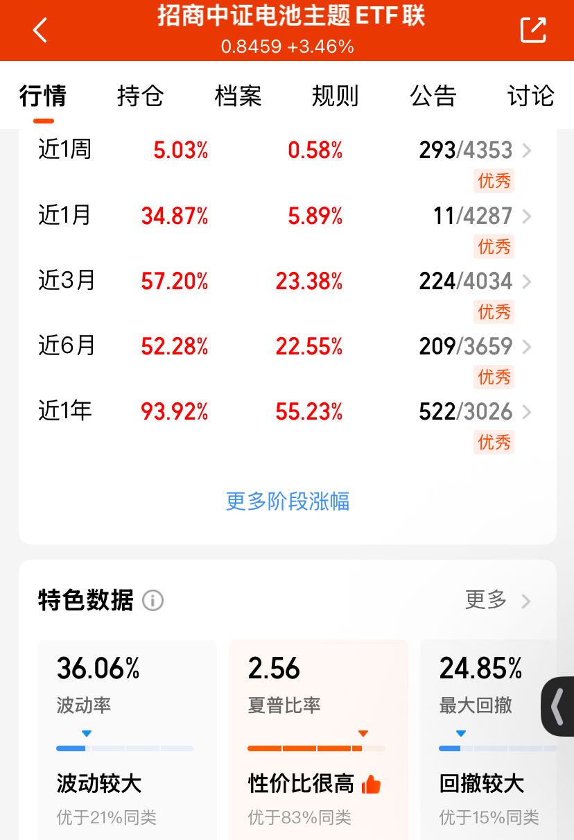 今天虽然指数涨了不少,可是个股涨少跌多呀,但是电池板块韧性十足,目前$招商中证电池主题ETF联接C(OTCFUND|016020)$盘中估值收红快2个点了,昨天收涨3.46%年度涨超93%,随着全球储能需求超预期,背后电价机制改革的催化,将进一步打开储能终局空间,电池行情有望继续走高!$永赢科技智选混合发起C(OTCFUND|022365)$$广发国证新能源车电池ETF联接C(OTCFUND|013180)$#9月游戏版号发放 景气度或超预期##创业板指创阶段新高 致敬“924行情”#