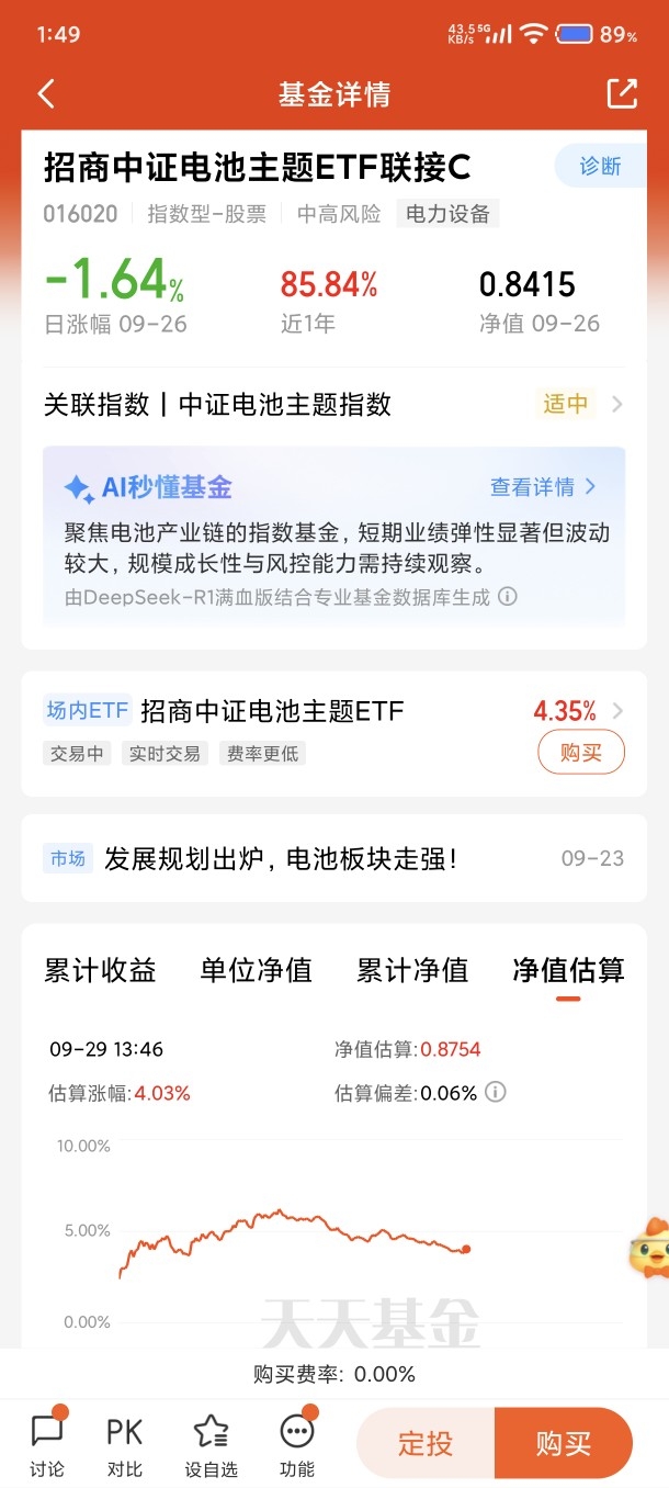 $招商中证电池主题ETF联接C$ @招商基金 #晒实盘# $招商中证电池主题ETF联接A$