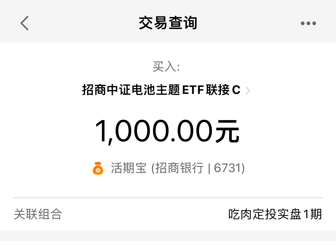 电池板块这两天真强,有成为下一阶段主线的趋势,昨天暴涨有点恐高,有小伙伴自己建仓了,今天又大涨,我也先建个迷你底仓1000块,建仓招商中证电池主题ETF联接C(016020)$招商中证电池主题ETF联接C$ ,近一年同类电池基金中排名第一,是我选择它的原因。先上车再慢慢上仓位,不然踏空的感觉很难受。