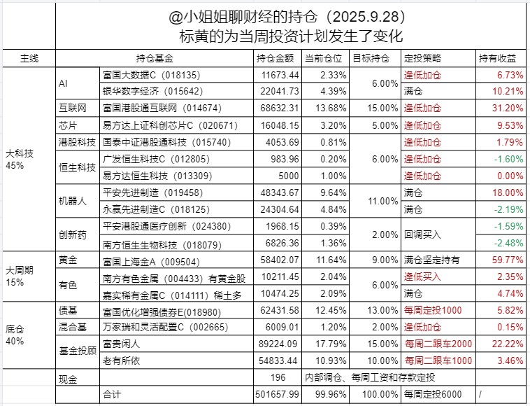 这几天手气真的太顺了,顺得我都有点活在上涨的恐惧中了。核心持仓科技和有色黄金天天大涨吃肉,熊市的记忆还很深刻,我有点不习惯,希望下个月继续大涨,让我好好感受习惯。