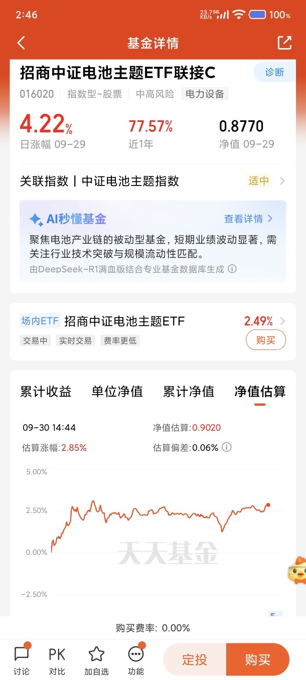 $招商中证电池主题ETF联接C$ @招商基金 #晒实盘#