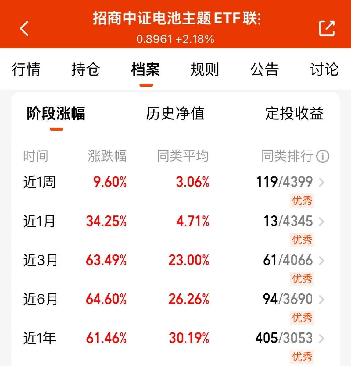 今天大盘高开高走,三大指数均上涨了,电池赛道继续反弹啦,真给力呀,$招商中证电池主题ETF联接C(OTCFUND|016020)$目前估值上涨1.92%,近一个月涨幅34.25%,近三个月涨幅63.49%,业绩出色,是高度集中于电池产业链的,卫蓝新能源完成D+轮融资等等利好,也进一步推动固态电池产业的发展,电池未来趋势明显,很有机会成为主线,我继续看好这个赛道啦!